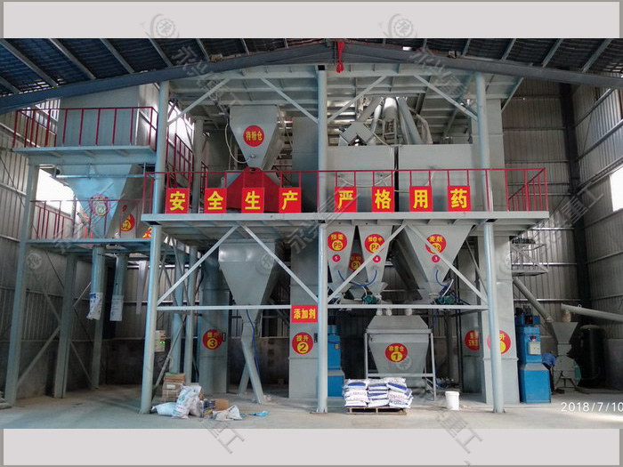 2.工藝流程由投料、配料、輸送、粉碎、提升、混合、包裝等工序組成。工藝流程連續(xù)合理,各單機性能良好,操作維護(hù)方便。